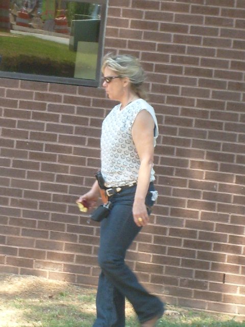She is packing a pistol now and wearing a bullet proof vest. She also has the big ear muffs (the ones you see at shooting ranges) so that she won’t hurt her ears after she shoots us. I told the sergeant on the scene that there was no other reason for her to bring her pistol to this place unless she was expecting to shoot. He told me that, “I hope you don’t give her a reason to do that.”