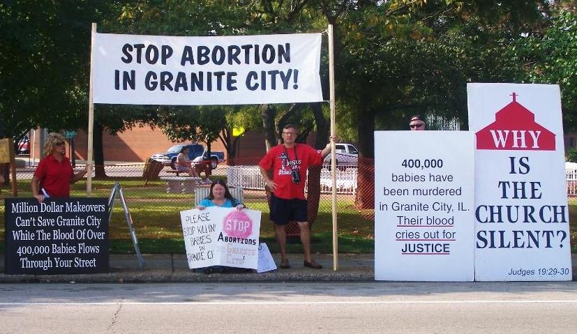 “Buy American” was the theme of the annual Granite City Labor Day parade where laborers, unions, and the Democratic Party marched down the washboard streets of Granite City, infamously known as the home of the Midwest’s largest, late-term baby killing mill. God blessed us with a beautiful, sunny day as we stood in the gap for the least of these. Even before the parade started, parade-goers were coming up to us and thanking us for being here. One woman said, “I hope you all change what’s going on.” Pointing to baby Malachi she continued, “Once you see what they do, you know it’s wrong.” The Grand Marshall was Congressman Jerry Costello. Mr. Costello says he is pro-life, but what is he doing about it? Saying you’re pro-life does not save babies; doing pro-life does. Granite City mayor Ed Hagnauer looked over at us as he tossed candy out with half a smile on his face. “Mornin’ mayor!” Some laborers shook their heads; others made snide remarks such as, “Why don’t they go somewhere else?” “Because little future laborers and union members are being dismembered and flushed down the sewers just two blocks over. Do you care?” Silence… Numerous marchers actually waved to us and encouraged us saying, “Thank you. We’re glad you’re here,” and, “Keep doing what you’re doing.” Least affected were the little children. They weren’t upset upon seeing the signs and pictures, but rather their parents were as they barked at their kids to turn their heads. We overheard little voices asking, “Why do they hurt babies?” as the sparsely float-filled parade went by the remnant. “Shut up! Don’t look!” the scout master yelled.