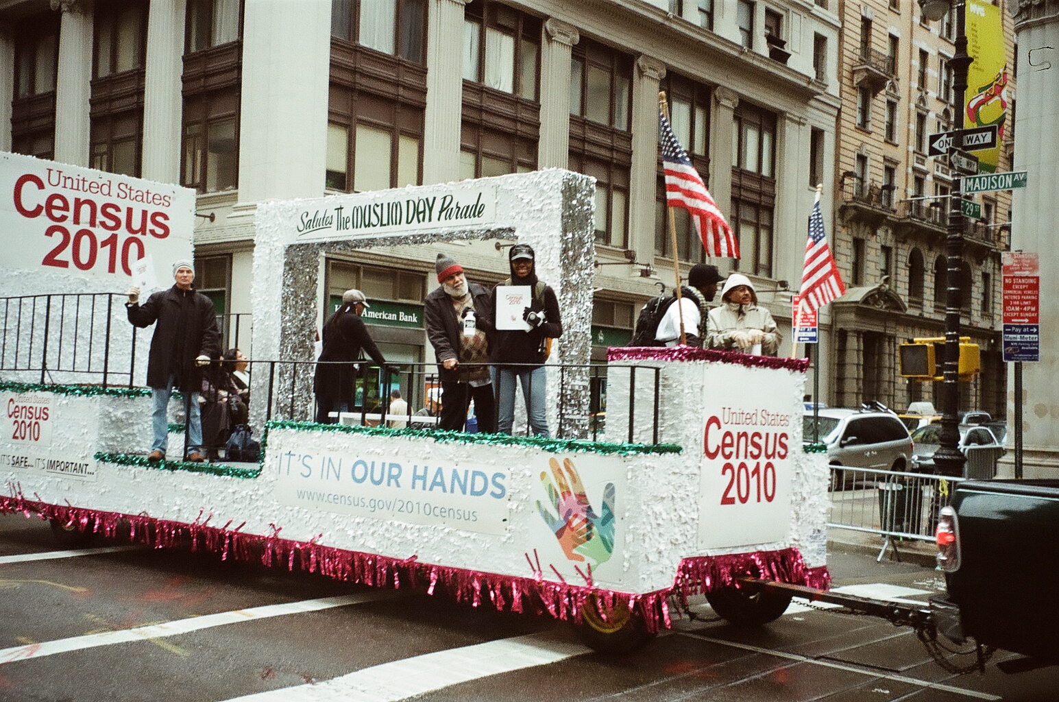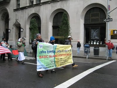 New York Muslims were holding their 24th Annual United American Muslim Day Parade on October 18th. The parade started out at E. 41st Street, they marched down Madison Ave., to E. 26th Street. They had a food bazaar and a stage set up for guest speakers at the end of Madison Ave. The parade had about 500 marchers and very few people lining the streets to watch.