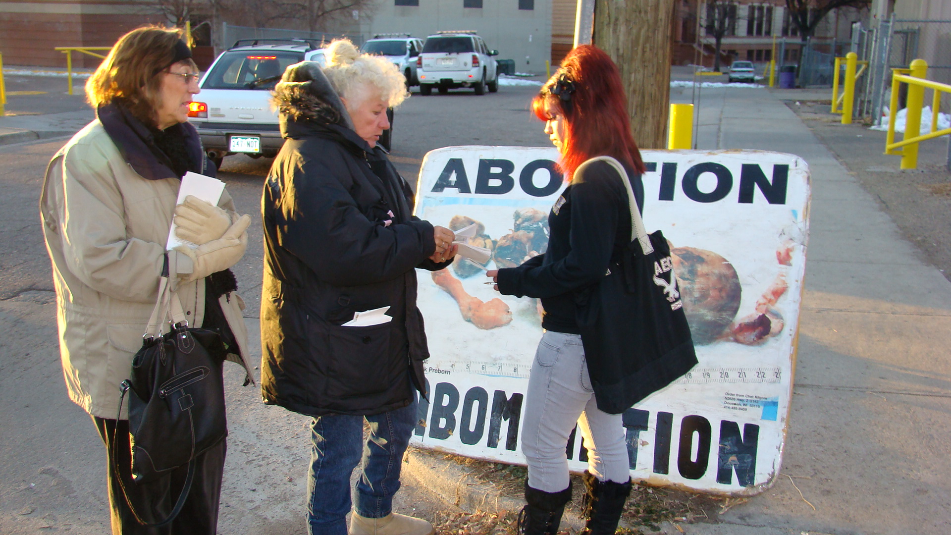 Denver saints hit the frozen streets outside of North High School in Denver at 6:30 a. m., November 24, 2009, in honor of our slain brother in Christ. The students arriving for school were receptive, asking questions and taking lots of our literature. One young lady named Jenny told us of her 16 year old friend that wants an abortion because she believes that no one will help her. We loaded Jenny up with information and resources to persuade her friend to keep her precious little one. Pray that we hear from them soon.
