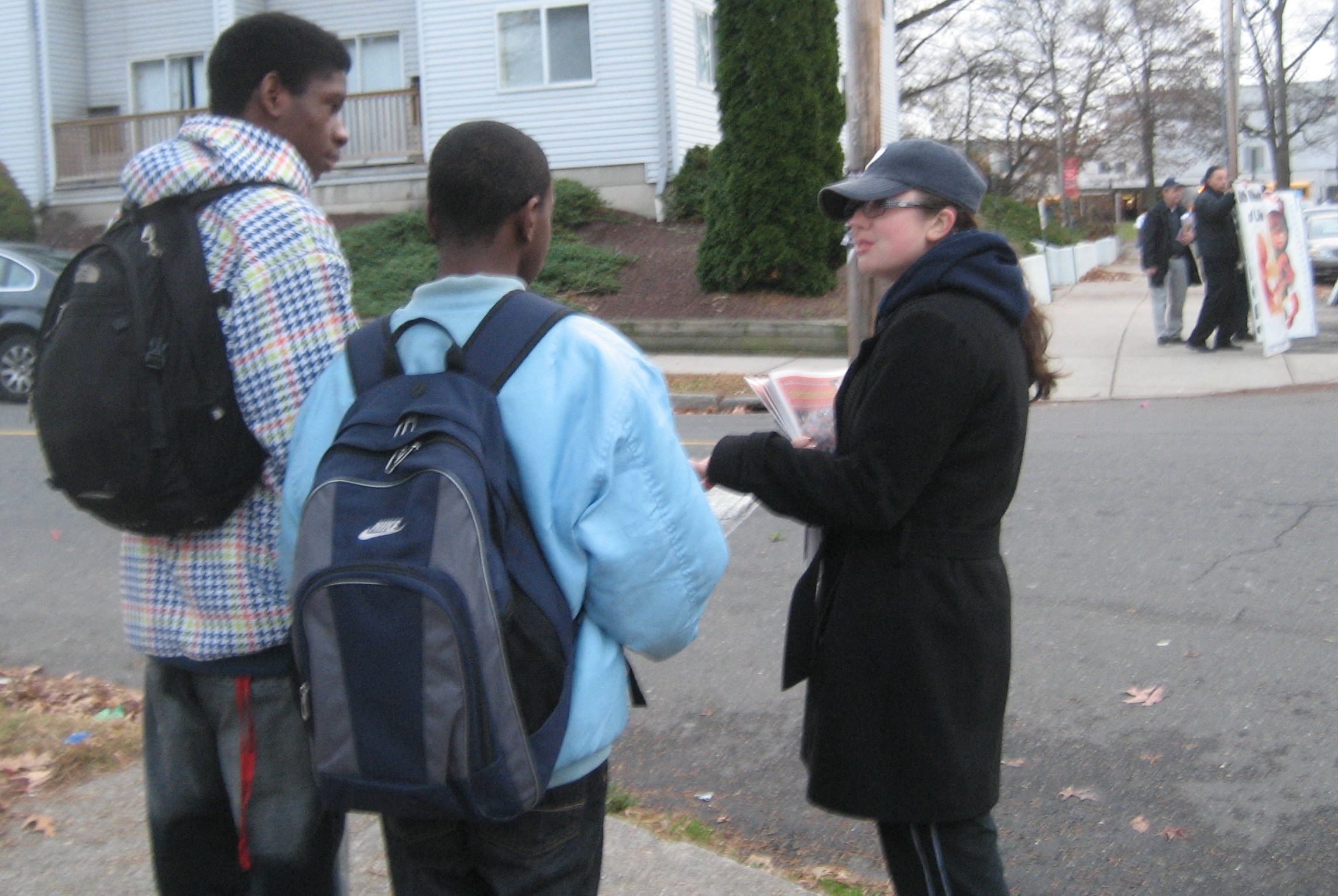 God blessed us with a wonderful outreach Tuesday morning at Central High School in Bridgeport, CT. About 35 saints showed up to hold signs and distribute literature. We had some youth from Gospel Light Church and Pastor Pedro was there too. Thousands of students attend this school and we had people at both entrances and even some that attend the school took literature in. We passed out OSA brochures on Thanksgiving, Evolution & Why We Carry Graphic Signs. We also gave out scripture wristbands, Bibles, Mark Cahill books and tracts, LoveMatters.com newspapers and other info on abstinence, abortion and sexually transmitted diseases. We gave out thousands of pieces of literature, thanks be to our Lord and Savior Jesus Christ who made it all possible. Now we all pray for the anointing on all those items, that God would use them to further truth and His kingdom.