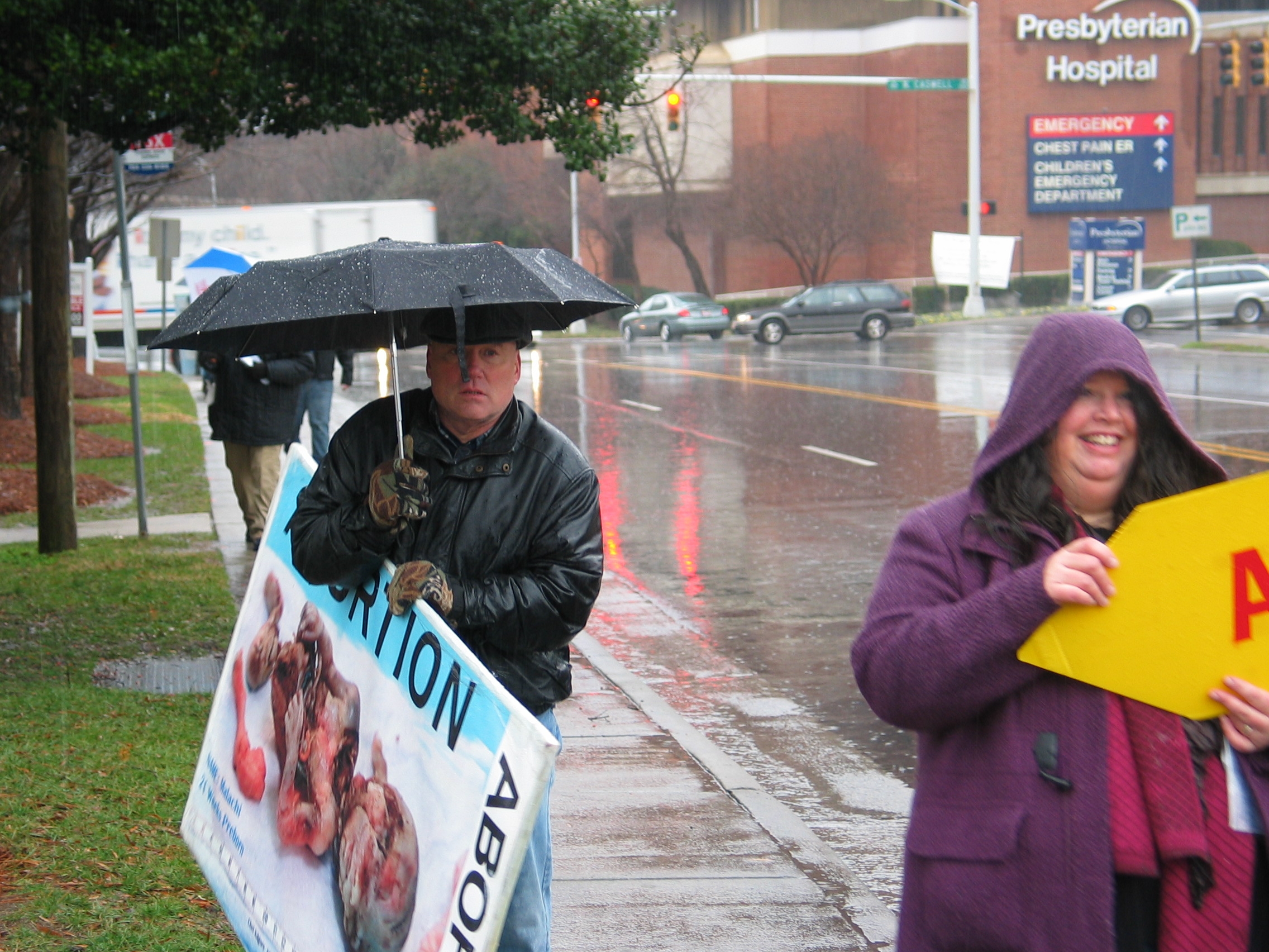 From there, we packed up and went to downtown Charlotte and exposed the unfruitful works of darkness at the Presbyterian Hospital. This is a huge complex and, unbeknownst to many, this hospital employs two doctors who moonlight as abortionists. Last year, Flip confronted them and pleaded with them to stop killing babies. They promised they would stop and thus were not uncovered to the general public.