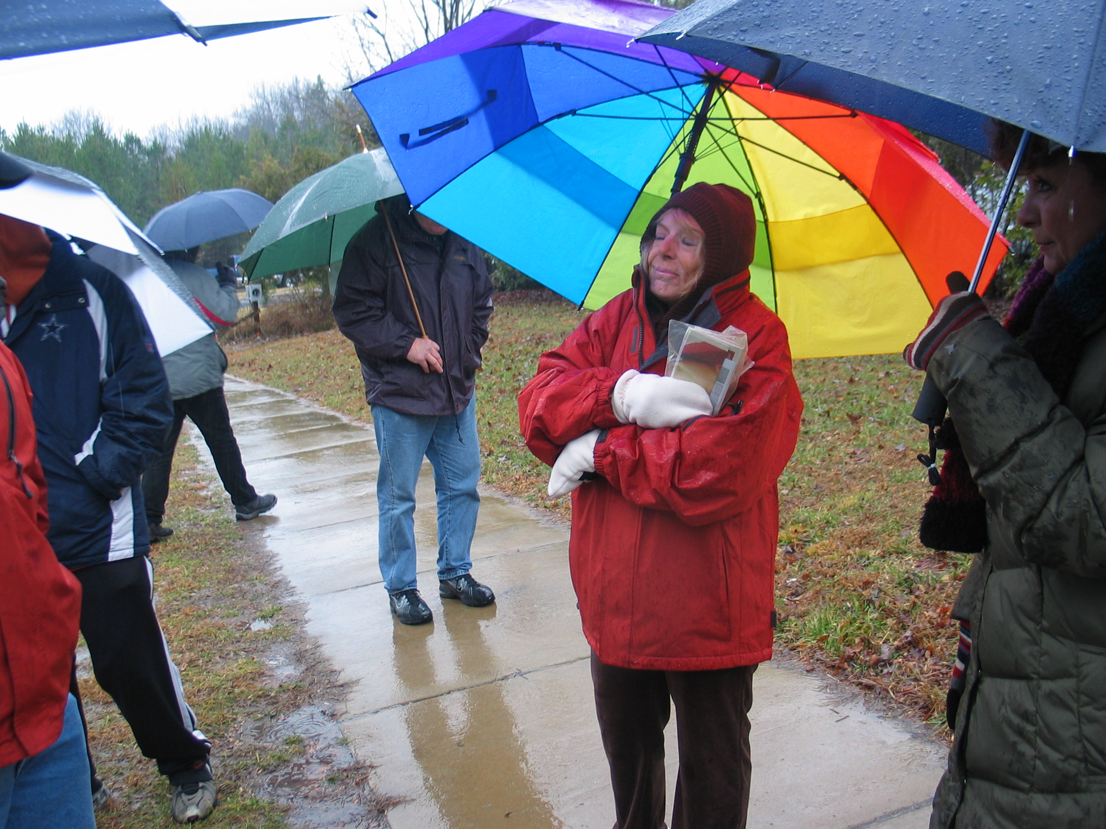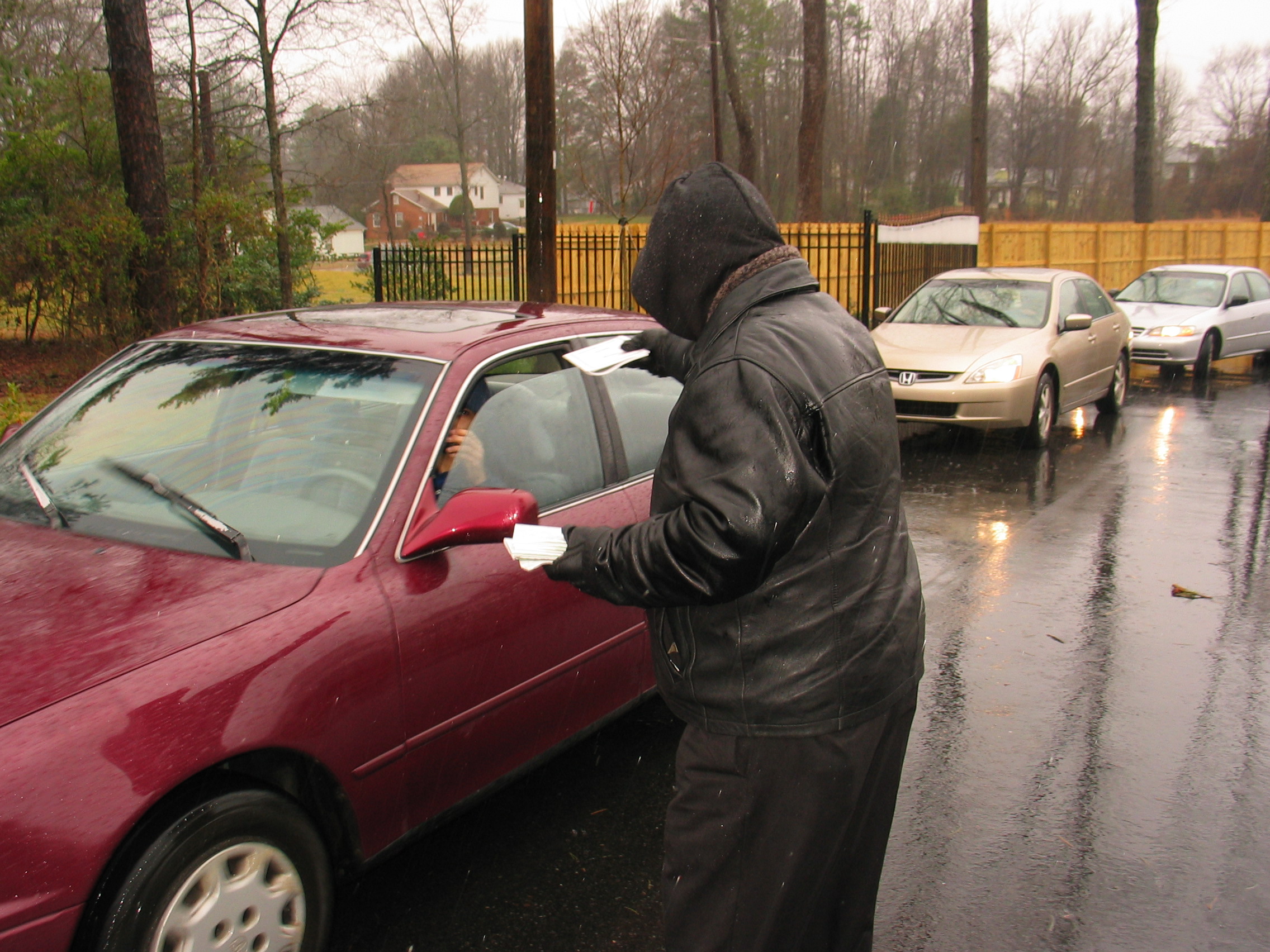The next gate we visited was the largest Mosque in Charlotte. In the freezing rain, we passed out over three hundred Gospel packets, which included the Gospel of John and Romans in Arabic and English, plus the Jesus film in Arabic. Ninety five percent of the Muslims received the materials with smiles on their faces. One Muslim refused the materials. Pastor Bill Shanks from New Orleans informed this individual, “There will be no virgins for you.” Only Pastor Bill can get away with something like this.