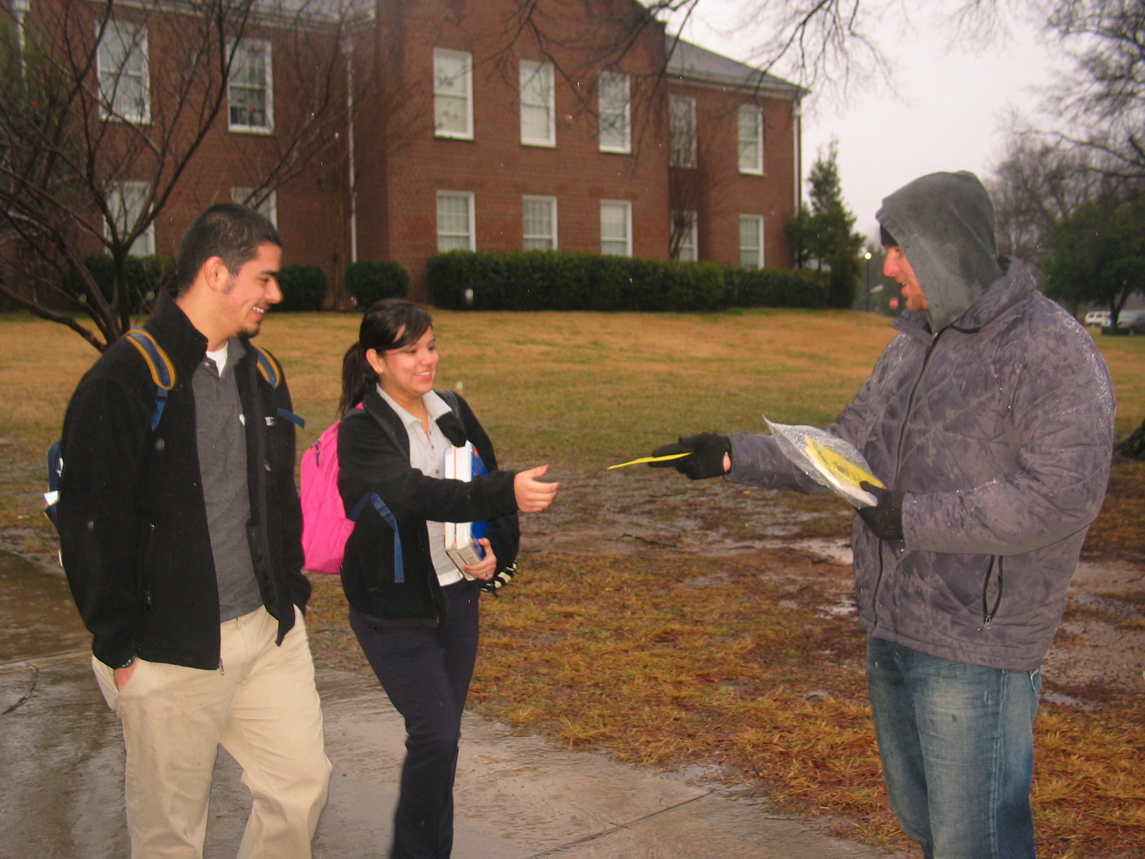 Though the weather was severe, we passed out hundreds of Christian/pro-life packets to the students.