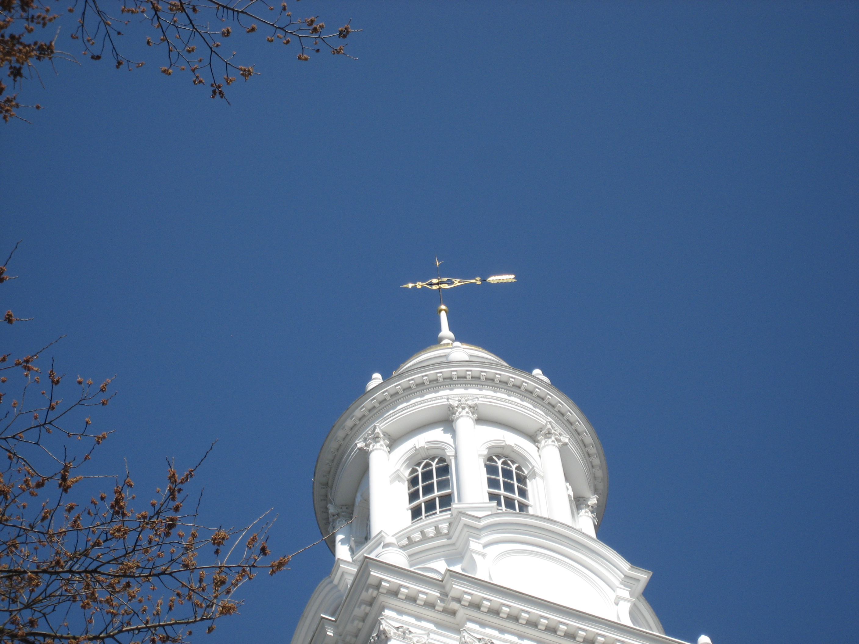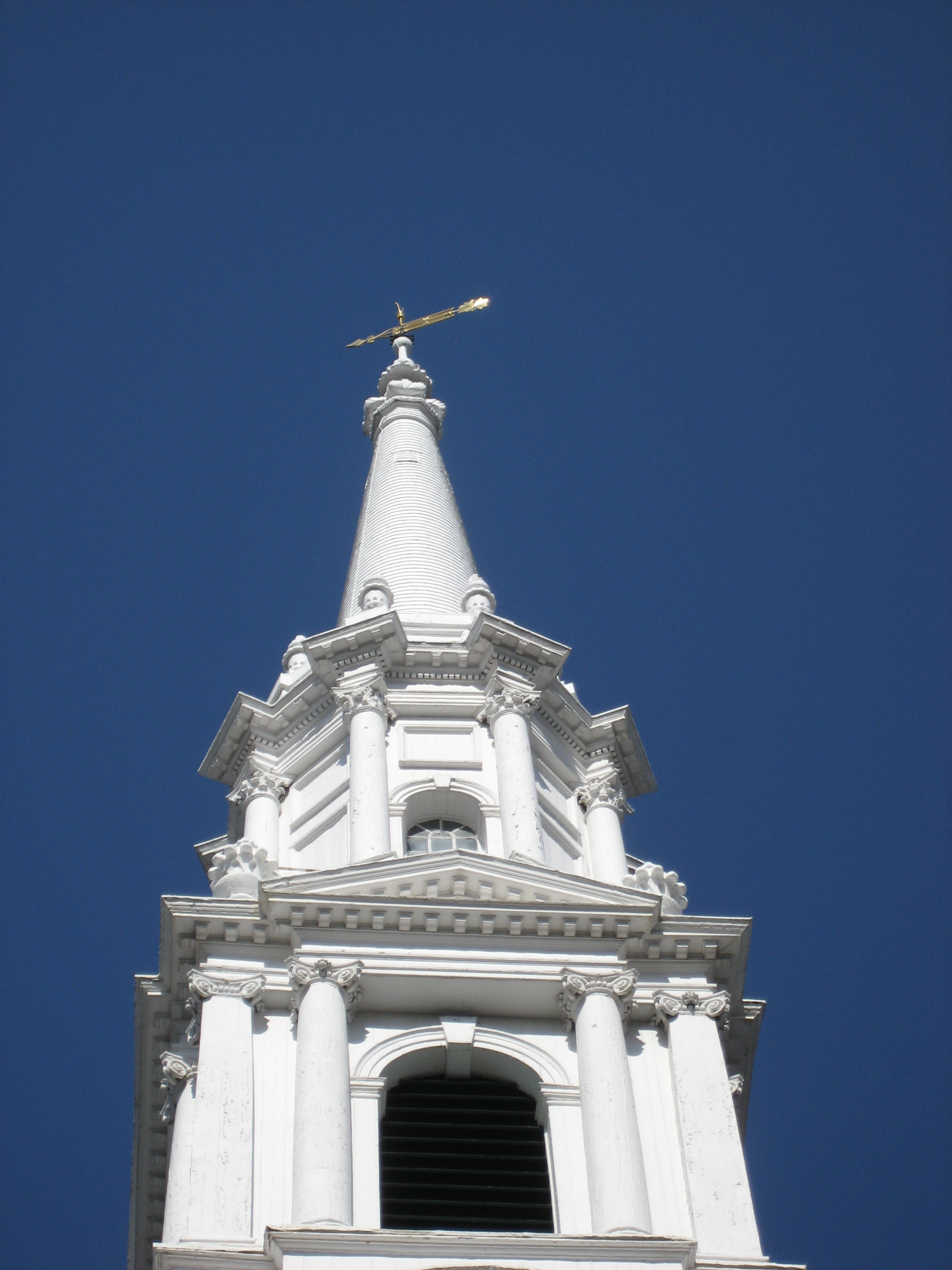 I took pictures of these two steeples of the churches on the New Haven green. There are no crosses but weather vanes. This is representative of their doctrine that is tossed to and fro with every wind.