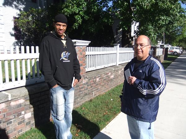 Then another guy walked by and I gave him a tract, and he actually stopped to talk. I asked him if he knew where he was going to spend eternity. He said, “No.” So I turned around to get a Mark Cahill book and Mike Sette started going through the gospel with him. Straight from “Way of the Master,” like it was Kirk Cameron, Ray Comfort, or Mark Cahill talking to him! So I started praying for him. Well, praise God, that kid was humbled and broken, and went from thinking he was initially a “good person” to admitting that he was a sinner going to hell. He asked Jesus Christ to save him right there! (Picture of him and Mike) I told him about our church and he gave me his address and cell number and said he’d love to come next week and get involved with our college/career group.