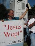 For the past six years, the Church of Jesus Christ in Charlotte has faithfully brought the Gospel of Christ to the HRC at the entrances of the Convention Center and proclaimed the Gospel truth, much to the chagrin of the all dressed up- black tie homosexual community. They dreaded to walk the 400 yards from the Hilton Hotel, where most of them stayed, to the Convention Center under the piercing conviction of the Holy Spirit exposing the sin of homosexual sodomy that destroys those who practice it and nations that approve of it.