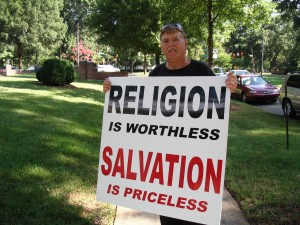 During the summer months, Myers Park Baptist opens up a “talk back” room after their morning service. This event allows the parishioners and the pastor to have a time to discuss, ask questions or testify to the effect of the morning’s sermon in an open mic forum. Surprisingly, Operation Save America was welcomed to participate. The theme of the discussion revolved around judging and abortion. Seven OSA people spoke at the microphone about the tragedy and horror of abortion. The congregation reminded OSA speakers that Jesus teaches us not to judge. Each time the OSA saints took the parishioners back to the Scriptures on judging and the the pastor would say some mystical thing about not judging and do his best to obfuscate the truth.