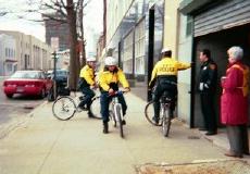 April 27, 2001 Today we had an exciting day at the mill. One of the men clients recklessly pulled right up on the sidewalk to drop off his woman in the very doorway of the killing center. There were adults and Brian's little girl praying off to the side of the sidewalk. Police officer Jorge Cintron (#708) ran over to his car and asked him what he thought he was doing! He did not even have a license. He was told by the officer to pull over down the street. He was later hand-cuffed and taken to the police station in a police car. It was overheard that he was charged with "child endangerment" and "assault three". The young man was very rowdy towards the policeman. The "deathscorts" were trying to defend him and saying we provoked him to take that action. I know I did not even go near the car. Carmen just happened to be on that side of the building and spoke with the mom after the car was already up on the sidewalk and the passenger door opened to the entranceway of the mill.