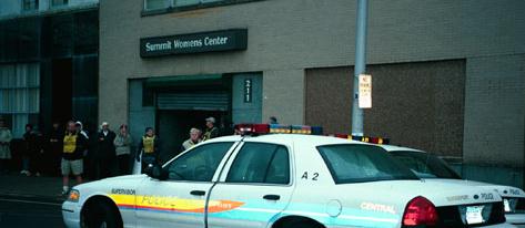 February 20, 2001 Today the rusty rolling door of the killing chambers was open for business by 7 a.m. There were 18 hands and 18 feet from "deathscorts" that rushed 22 moms into the death camp to shed the innocent blood of their sons and their daughters. Ten pairs were Wesleyan students. My heart was pounding as I tried to plead with these confused clients to spare the lives of their children. I can never get used to this. It really upsets me. I can't believe that in America, we have to plead with moms not to kill their children! I just don't get it. Neither does God. He evens says in Jeremiah three times (7:31,19:5,32:35), that child sacrifice is "a deed so horrible I've never even thought of it", "a thing I never commanded them nor even thought of!" "something I never commanded, and cannot imagine suggesting. What an incredible evil!" Father Smith was there to represent the clergy and exorcise the demon with his prayer team. I thank God that one mom changed her mind and that three turned away, hopefully never to return to that dreadful, horrible place. The sad part is, from our calculations, 18 innocent defenseless babies were killed. Officer Edgar Perez was guarding the door and Scott was on video for them. The Hendricksons are probably on their yearly trip to the Virgin Islands. We had Ray filling in on video while Will recuperates. Our Sr. Pastor Dave did a teaching Sunday Feb. 11th to challenge the church to action. How many "churchgoers" will be prompted to action by the conviction and courage of their leaders in stopping abortion? "Who will rise up for me against the evildoers? Or who will stand up for me against the workers of iniquity?" Psalm 94:16 Please join use in fervent prayer to end this child sacrifice in our community. "And what does the Lord require of you? To act justly, and to love mercy, and to walk humbly with your God." Micah 6:8 They are open this Friday, February 23rd. Stand with us until not one drop of innocent blood falls to the ground. Meet you at the very "gates" of Hell.