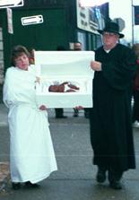 December 30, 2000 We had a blessed time last night as we witnessed the holy union of Flip Benham's son Jason, and Pastor Cantedore's daughter, Tori. "You were united to your wife by the Lord. In God's wise plan, when you married, the two of you became one person in His sight. And what does He want? Godly children from your union." Malachi 2:15 I am joyful to report that 109 babies were saved in the year 2000 at the Bridgeport killing center. In the month of December - there were 10 babies saved, and 14 turn-aways! PTL! There were approximately thirty prolifers out in the frigid cold (-15 degrees wind chill factor) yesterday. Officer (#946) was on duty for the mill, and Will and Donald were on video to "catch the footage" of the morning. Dagney was kind enough to bring a portable heater and we gave out a bunch of hand and feet warmers :-) Some of the CHS teens came out even though they were on school vacation. Their dedication is truly observed by many, especially God! Our brothers Flip Benham and Rusty Thomas joined us we had three babies saved and three turn-aways! We give our Lord and Savior King Jesus all the glory! Carmen, Rusty, Colbi and I had the chance to talk to one of the moms, Carla, who was very receptive. Colbi, my eight year old granddaughter just had to tell her that the baby in her womb was going to grow up to be a child just like her! "You have taught the little children to praise you perfectly. May their example shame and silence your enemies!" Psalm 8:2 Please pray for the other moms Verdita and mom #3 who were seemed relieved that they changed their minds. We gave them videos and resource information for any help they might need. "His preaching will bring fathers and children together again, to be of one mind and heart, for they will know that if they do not repent, I will come and utterly destroy their land." Malachi 4:6 It is very sad though that 23 moms went in to have their children killed. The abortionist went in at 9:20 a.m. We are not sure who it was? One of the grandmothers was outside crying because she could not get her daughter to change her mind. Where are all the newscasters to report this injustice! It's amazing how all the newscasts showed the travesty of the seven co-workers that were killed in Massachusetts, but no one seems to care about the innocent babies that are being killed in abortuaries all over our nation . It was pretty evident to us that seventeen babies died in Bridgeport yesterday. Why didn't we see this reported on the news? As we enter a new year I want to encourage all of you to look forward to the hope Jesus has given us. In Revelation 21 we are all reading now how we will inherit a new earth. He will live with us - His people. He will wipe away all the tears from our eyes, and there will be no more death, nor sorrow, nor crying, nor pain. He will make all things new! Everyone who conquers will inherit all these blessings, and He will be our God and we will be His children. But cowards who turn back from following Him and those who are unfaithful to Him, including the corrupt, the murderers, and the immoral, and those conversing with demons, and idol worshippers and all liars -- their doom is in the Lake of Fire that burns with fire and sulfur. Keep believing God to end child sacrifice in our communities real soon. Never stop praying for our new president-elect, that he would not be a pragmatist but have a biblical world view. Pray that God gives him mature Christian counsel. But most of all pray for the true biblical church of Jesus Christ to rise up in these evil days and do what God has called us to do! "These people draw near to me with their mouth, and honor me with their lips, but their heart is far from Me. And in vain they worship Me, teaching as doctrines the commandments of men." Matthew 15:8&9 Jesus rebuked the religious leaders in Matthew 23 that were in the same state as the American Church today, we need to take note and repent. "Why do you also transgress the commandments of God because of your traditions?" Looking forward to serving the Lord with you in 2001!