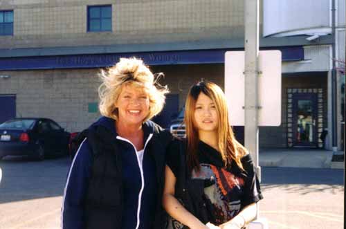 Angela and Sindy with Hopeless clinic in background after choosing life for her baby