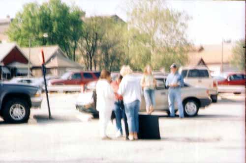 Angela praying with mom and daughter after unsuccessful attempt to dissuade them before going into mill