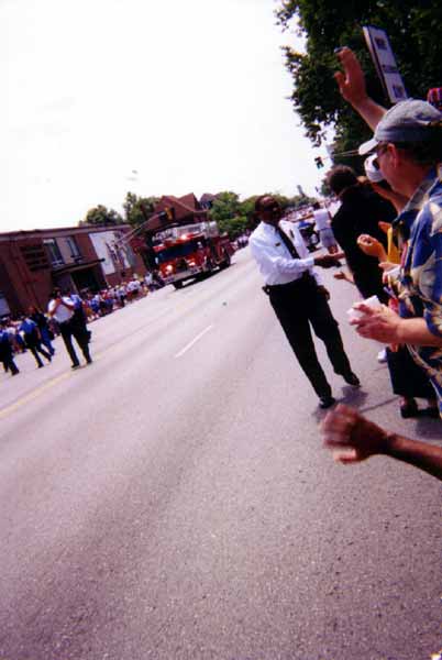 St. Louis Fire Chief Sherman George and Police Chief Joe Mokwa leading Sodomite parade with police officers sin background holding hands