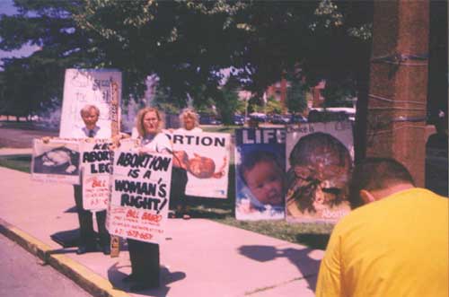 The media covered the proclaimers and filmed the graphic pictures for the evening's broadcast. When Bob Baird arrived he was upset that, #1. A no-show of pro-death supporters (Well, Mr. Baird, if the prochoice community would stop killing their children, you might have some supporters) #2. Mr. Baird accused the NRTL of "tipping-off" the proclaimers to his press-conference (little did he know, we were there to rebuke the NRTL) The advantage of being "pro-life" is you have many "arrows" to fill your quiver, and on the day of battle you will not be put to shame..PTL! Thank you Lord for giving your servants this awesome opportunity to lift up the name of JESUS! "Unless the LORD builds the house, its builders labor in vain. Unless the LORD watches over the city, the watchmen stand guard in vain. In vain you rise early and stay up late, toiling for food to eat- for he grants sleep to those he loves. Sons are a heritage from the LORD, children a reward from Him. Like arrows in the hands of a warrior are sons born in one's youth. Blessed is the man whose quiver is full of them. They will not be put to shame when they contend with their enemies in the gate." Psalm 127 Be encouraged~Angela