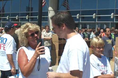 Angela interviewing man at Promise Keepers Convention