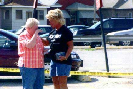 Angela comforting a woman from Granite City who felt convicted for her years of apathy