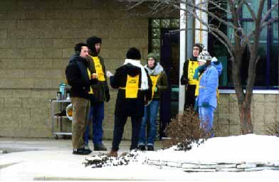 St. Louis U. and Wash. U. deathscorts huddling