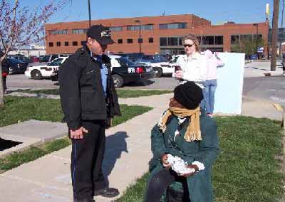 Sidewalk chalk criminal Sr Grace being questioned by police