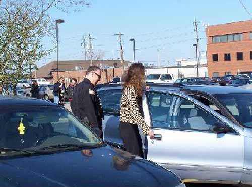 Deathcamp guard Mike Held and Rebecca Smith searching car