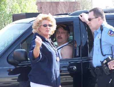 Angela speaking to police about crime scene tape