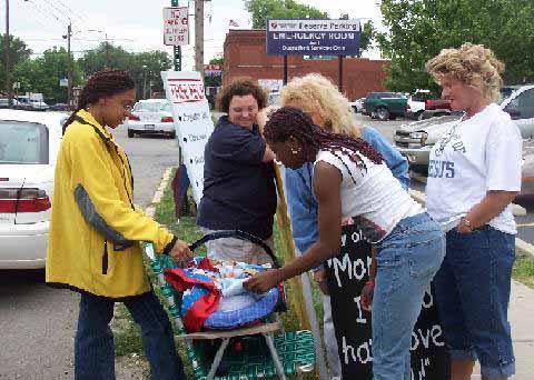 Katrina showing baby Caleb to Demetria (on right), save 5 wks