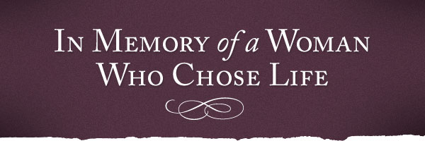Because this woman chose life forty years ago, I have enjoyed fifteen years of the happiest marriage for which a man could hope.