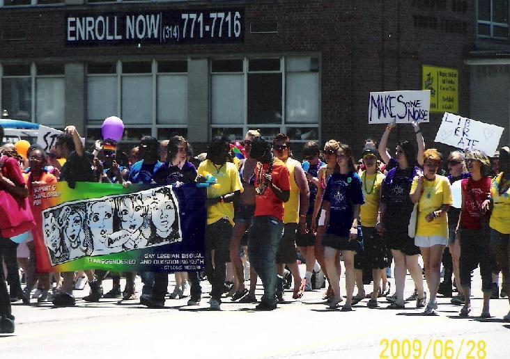 A feeling of sadness came over us as we viewed the same haggard drag queens and the same overweight, greasy, leather chapped cowboys, half dressed boys on floats, marching down Grand Boulevard to the entrance of Tower Grove Park. Floats and creativity were down this year. Maybe due to a lack of funds or energy? But the numbers of militant teen homosexuals and children marching with their ho-made signs were up. Our young are being indoctrinated at an alarming rate.
