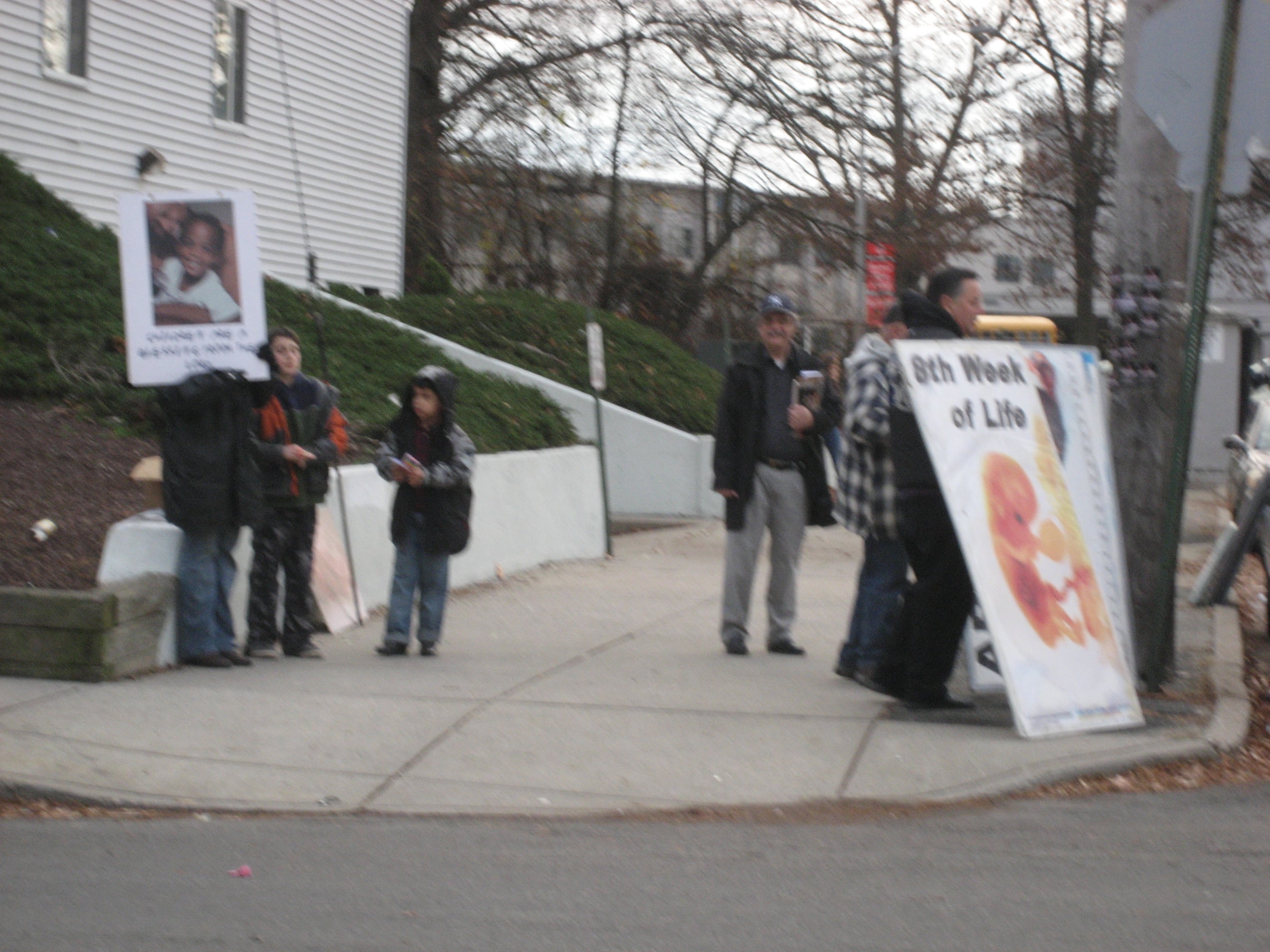 God blessed us with a wonderful outreach Tuesday morning at Central High School in Bridgeport, CT. About 35 saints showed up to hold signs and distribute literature. We had some youth from Gospel Light Church and Pastor Pedro was there too. Thousands of students attend this school and we had people at both entrances and even some that attend the school took literature in. We passed out OSA brochures on Thanksgiving, Evolution & Why We Carry Graphic Signs. We also gave out scripture wristbands, Bibles, Mark Cahill books and tracts, LoveMatters.com newspapers and other info on abstinence, abortion and sexually transmitted diseases. We gave out thousands of pieces of literature, thanks be to our Lord and Savior Jesus Christ who made it all possible. Now we all pray for the anointing on all those items, that God would use them to further truth and His kingdom.