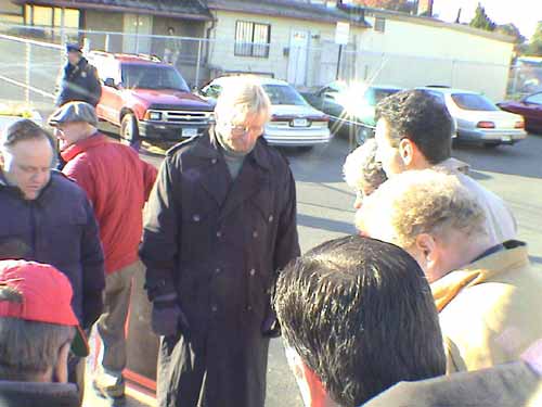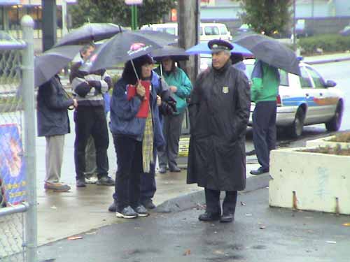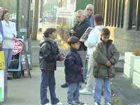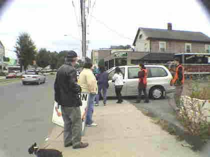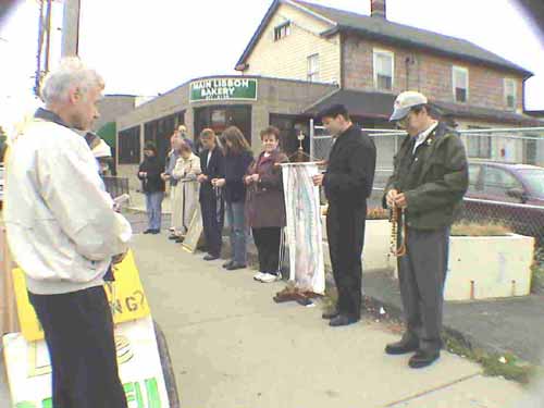 We sadly found out that Fr. Markey was moved to Norwalk yesterday. The Bishop called him on Friday and he had to pack and move to another church because the priest there is ill. We will miss Fr Markey, who was the most public priest to take a stand against baby killing in Bridgeport. I hope he still comes out to the streets in Bridgeport. Please pray for him and his new responsibility as head administrator at St Mary's Church in Norwalk. Seven from our group went to City Hall at 1pm for the citywide prayer meeting led by Pastor Miller to target the corruption and sin in Bridgeport. There was a good turn out. At least seventeen pastors prayed over the mayor (Fabrizi) and his opponent (Torres). They also prayed over all the political seats in the chambers. Congressman Christopher Shays was present and was also prayed for as were others that were running for or in office. Pastor Miller closed the meeting with a reminder to the Christians about their duty to stand out on Main Street. He said God hates the shedding of innocent blood and we should too. A community will never experience true revival if it coexists with baby killers and does nothing to stop the slaughter. Please join us on Wednesday and Saturday mornings as we reach out to the lost and needy who find themselves where they should not be. We are going to a local high school Wed. Nov. 12, 2003 for our national OSA "God is Going Back to School" campaign. We will be there from 7am-7:45am. Let us know if you can come and need directions. Thank you, there is power in unity and numbers. Let's stand together for Jesus! For the Least of These, About 25 prolifers came out to the streets Saturday morning. John Scherer was here from Kentucky this past week. It was great to have him with us. It was a bit chilly Saturday morning at 32 degrees.Time to get the winter gear out. Eleven teens came out including a group from Calvary (see below). Fr. Markey Pastor Ron were here to represent the local clergy. We tried to bring some attention to the passersby that babies were being unjustly led to slaughter at 3787 Main Street. Most did not care. One man shouted out the car "We would have more crime if it weren't for abortion" another said "we should kill 50,000 more." We definitely live in a sick perverted world. Lord have mercy.