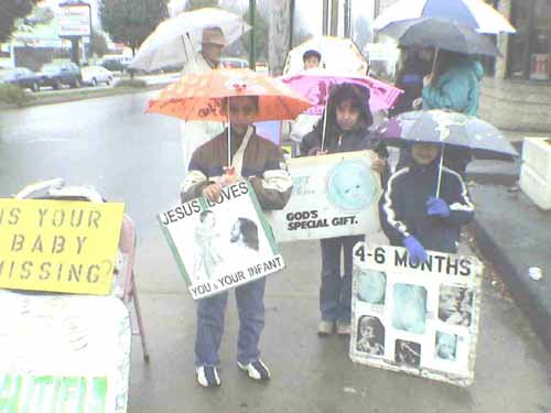 Looking back on 2003, we give God all the glory for what He has done in the past year of ministry! 101 Babies were saved from death (totaling 1196 in fourteen years). There are now one hundred and one young Connecticut citizens alive because you were bold and courageous and came out to the streets to save lives for Jesus! 7 people confessed Jesus as Lord and Savior (totalling 351 in 14 years) Tens of thousands of gospel literature has been passed out at seven local high schools, at the abortion mill, at Yale, Milford Hospital, porno protests, Gay Pride in New Haven, porno protests in Milford, and more. We were able to do a home bible study for eight months in one of the mom's home. We visited moms in the hospital after they had their babies. We sent out and delivered multiple packages including literature, videos, audios, Bibles, diapers, wipes, food cards, etc. You helped families pay bills, buy food, get furniture and electrical help. You helped find jobs, training programs, housing, and insurance benefits for the needy. All because you worked together with us to make this happen. We could not do this alone. We thank you for helping us help others. We also thank the AFA Law Center and Mike DePrimo for always being there for us. God always provides what we need. We were able to hold some momentous events in 2003 and attended some, too. We brought many young ladies and moms to the Hopeline Purity Conference. We had two short term mission trips last summer. Our own Kelly and Cori received youth awards at Connecticut Right to Life Conference. Looking back I would say we had a very busy and fruitful year. We thank Our Father, because we know it is all because of Him. We are excited that the Summit abortion center went from six days of business down to two days. They are only open two days a week now. We are hoping and praying the killing will end soon in Bridgeport. Hope to see you all this Saturday, 7:15 am, as we reach out to the lost and needy who find themselves where they should not be. Bishop Lori will be leading a procession to the Summit from the Catholic Center at 9:30am. Come and take a stand for life. For the Least of These, REMINDER- Jan. 22 is just weeks away. This is the horrible day that child killing was legalized in our nation 31 years ago. Since this time, 45 million innocent children have been slaughtered. Don't sit back and let this continue. Get your churches activated. We need pastors to sign the STAND UP FOR GOD statement and return it to us. Give one to your pastor. We want to take out a large ad in the CT Post right before the Ecclesiastical Court and Roe Memorial. Please help sponsor the ad with a donation to OSA-CT, 632 Merwin Ave. Milford, Ct 06460. Thank you. About 30 lifesavers came out to pray today. The police and doorman were present, there were no escorts. EIGHT WOMEN WENT IN AT KILLING TIME. This Christmas season lets us think about how awesome it is that the God of the universe has chosen us to be a part of the gospel proclamations out on the streets of our community. Our God, who's power is beyond our ability to fathom chose us to defend His most precious creation. Although we may not know why we were chosen, we should cherish it as an opportunity to serve our Lord and Savior who gave His life so we could live. "Rejoice greatly, O my people! Shout with joy! For look -- your King is coming! He is the Righteous One, the Victor! Yet He is lowly, riding on a donkey's colt! I will disarm all peoples of the earth, including my people in Israel, and He shall bring peace among the nations. His realm shall stretch from sea to sea, from the river to the ends of the earth." Zechariah 9:9-10 Please join us this Tuesday and Saturday as we reach out to the lost and needy who find themselves where they should not be. We will be here ... till the killing stops. We're here for LIFE. For the Least of These, "Then Jesus said to His disciples, "If anyone wishes to come after Me, let him deny himself, and take up his cross, and follow Me. "For whoever wishes to save his life shall lose it; but whoever loses his life for My sake shall find it." Matthew 16:24-25 Ten prolifers came out to pray in spite of the busyness of Christmas week. The police and the doorman were present. The count was extremely low today, PTL! We can see this killing center is not even making enough money to pay their expenses. We pray child killing will end soon here. Please pray for this to come to pass. From what we saw: Five-six women came at killing time. Yesterday Carmen and I delivered toys to most of the families we are working with. Thank you to Lady of Victory Church in West Haven that gave toys for the children that are needy. "For God so loved the world, that He gave His only begotten Son, that whoever believes in Him should not perish, but have eternal life." John 3:16 What was the first Christmas gift? A child! God gave us His son. How awesome is that. And speaking of Christmas gifts, my sister Nancy and brother-in-law Tom got the best Christmas gift too. They are in Russia and they have adopted a two year old boy, Daniel Artur. They should be home any day now. Please keep them in your prayers. "For unto us a child is born, unto us a son is given; and the government shall be upon His shoulder; and His name shall be called Wonderful, Counselor, The mighty God, The everlasting Father, The Prince of Peace. Of the increase of His government and peace there shall be no end." Isaiah 9:6, 7a. We wish you all a blessed Christmas and hope to see you this Saturday morning and next Tuesday Dec. 30, as we reach out to the lost and needy who find themselves where they should not be. For the Least of These, "...they saw the young child with Mary his mother, and fell down, and worshipped Him: and when they had opened their treasures, they presented unto Him gifts ..." Matthew 2:11 GOD BLESS YOU EVERYONE! We had a fabulous day of ministry as we went out to the streets of Bridgeport. Our first stop was to Ko