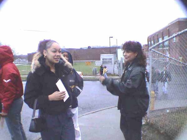 Carmen had a chance to talk to some girls from Harding High School. They are hungry for information. That is why it is so important that we reach the youth in the high schools. We will continue "God is Going Back to School" this Wednesday morning at Kolbe Cathedral, 33 Calhoun Place, Bpt. The police are notified. We plan to be there 7am sharp to 7:45am, then we plan to come over to the mill on 3787 Main Street. We will be passing out literature and holding signs. This is a very effective outreach, let me know if you are joining us. One of the young ladies I spoke to was crying. I believe in my heart that she did not want to do this. Many young women are coerced to kill their babies by their boyfriends and parents. That is another reason we need to be there, to offer them a way out. Jesus will always provide a way of escape. You don't have to choose the wrong action. We were told that a couple of girls were crying inside. I believe the Holy Spirit was trying to get a hold of them. Two did leave.
