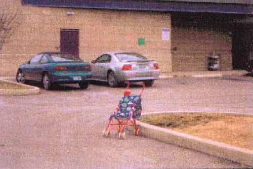 Empty stroller outside Hopeless, what could have been. "No more dead children"
