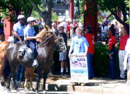 Baby advocate Issac being told that he has no rights on the public sidewalk outside Union Station at the Kerry-Edwards "Bloody Choice" tour rally in St. Louis, MO