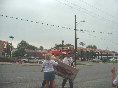 Auxiliary officer Dan Grayson shoving Angela before he assaulted her at Granite City Labor Day Parade