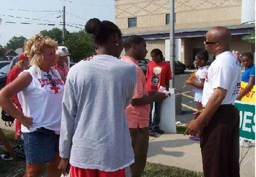 Angela & Pastor Clenard Childress of LEARN counsel Valarie & Jason outside Hope Clinic during Vision for Victory event