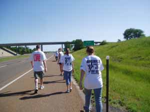 To everyone's surprise this man broke out crying. Rusty urged him to pull over, to which he refused. "Pull over," Rusty insisted and the man sped off and then, again to their surprise, he pulled to the side of the road where Rusty, long-time pro-lifer Gene Fry and Richard Shilling, also a local, began to minister to him. They were able to exhort and encourage him for about a half an hour. They gave him a Bible and were able to lay hands on him and pray for him, rebuking the tormenting spirits of addiction.