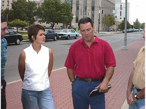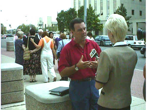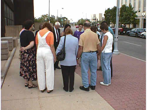 Prayer at the Federal CourthouseMonday, August 23, 1999 An impromptu prayer meeting, attended by Dave Mehaffie and his wife Kim, was held in front of the Federal Courthouse after Judge Walter Rice postponed the trial. Dave Mehaffie from Dayton, and Heather Mechanic from San Diego, who are both defendants in the trial, were interviewed by the media. The group prayed for Judge Rice and for the unborn children that would be affected by Judge Rice's decisions. The trial was postponed so that Judge Rice could decide whether he wanted to make a summary judgement. A summary judgement would take the place of a trial.